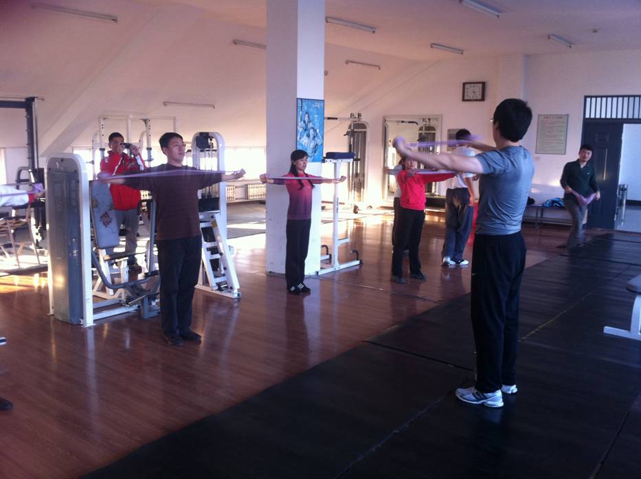 2011年11月2日,社会体育学院全体教师来到我校健身中心进行器械健身课程体验。其目的是使我院每名教师对器械健身课程有进一步了解,从而对所教专项的力量训练方式和方法有所启发和借鉴。体验课由母毅刚老师主讲,课程内容主要有组合器械、小器械和有氧器械的练习。