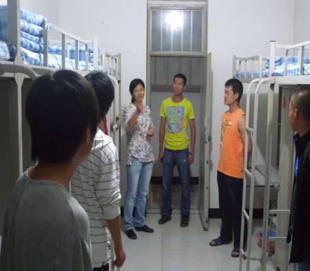 茶话会结束后,刘书记和季老师深入学生宿舍,看一看学生军训成果。走访过程中,刘书记对学生内务水平提出了表扬,并希望同学们养成良好的卫生习惯,将目前的状态一如既往地保持下去。同学们纷纷表示,不辜负学院的关爱和期望,用实际行动为社会体育学院争光添彩。