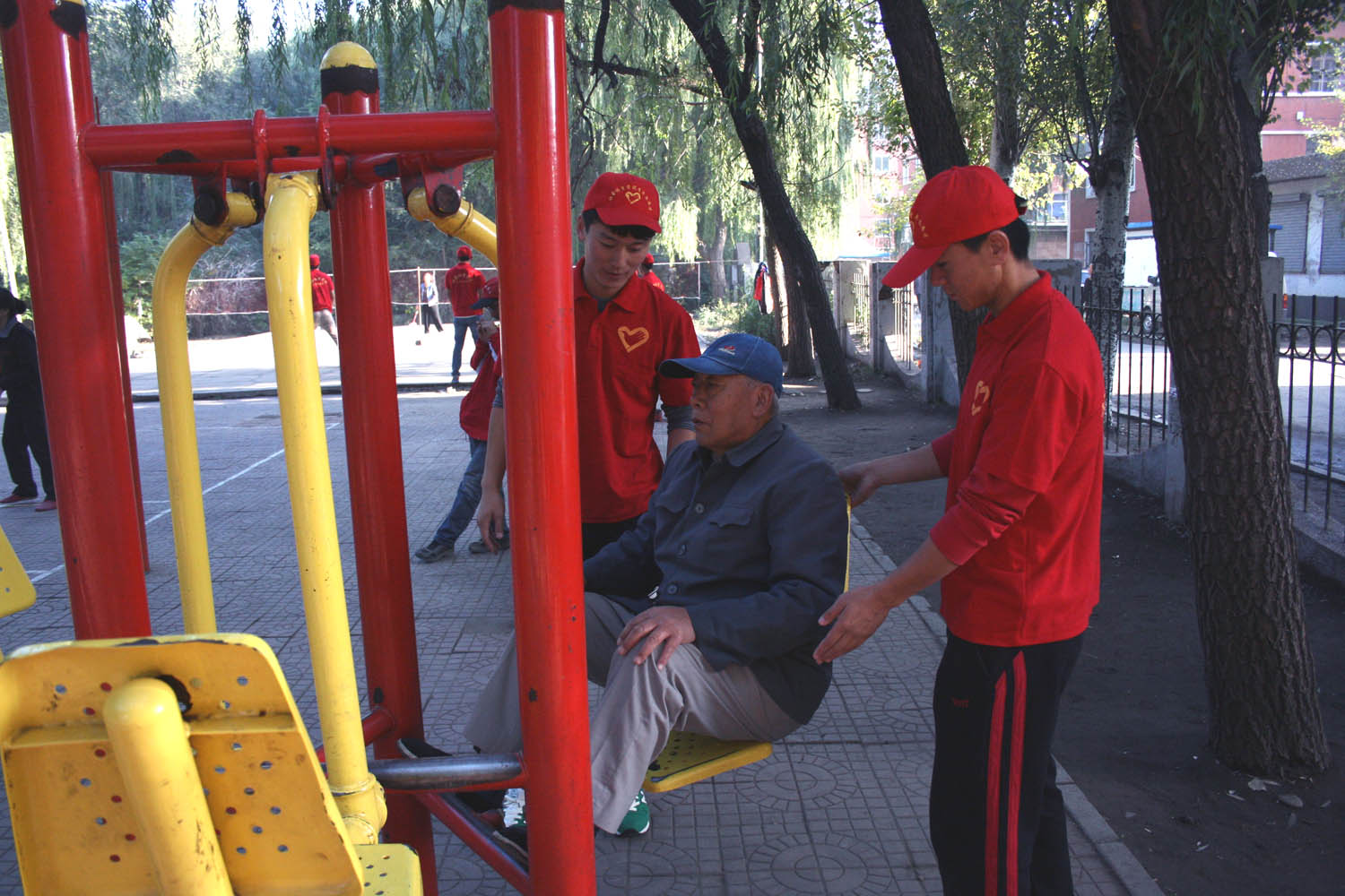10月16日,社会体育学院青年志愿者服务队来到加工厂育红社区,利用专业优势开展科学健身进社区活动。