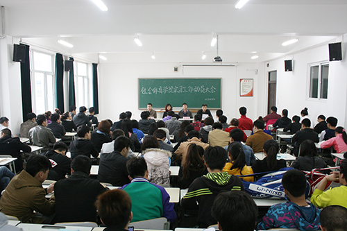 4月26日,社会体育学院在教学楼213教室召开了实习工作动员大会。社会体育学院党支部副书记刘秀红、副院长邹本旭、实习办公室主任高观福出席,会议由辅导员包健峰主持,社会体育学院2010级全体实习生参加。