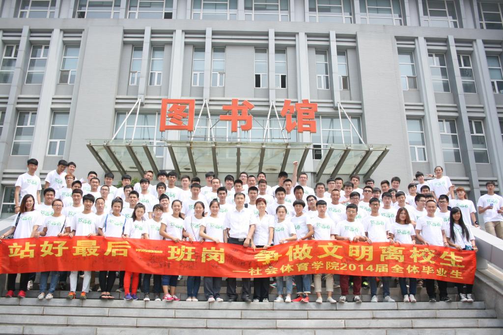 签字仪式上,社会体育学院2014届毕业生代表宣读了《文明离校倡议书》。