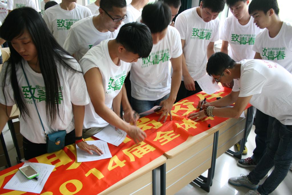 悠悠母校情,牵动学子心,谆谆师嘱托,伴着学子行。大家一起将自己的名字写在了承诺条幅之上,带着自己的决心,留下他们的动人时刻。