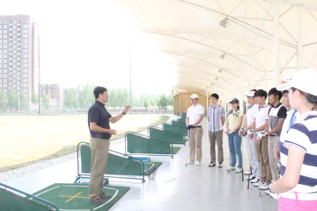 为进一步检验学生高尔夫专项技能基本功水平,4月25日,社会体育学院首届学生专项技能基本功大赛——高尔夫专项技能基本功大赛在高尔夫练习场举行。社会体育学院书记樊占平、副书记刘秀红、副院长邹本旭、办公室主任高观福、高尔夫教学小组全体教师出席,沈阳金旗文化咨询有限公司、2013年中国十佳高尔夫教练关雪峰莅临比赛现场。