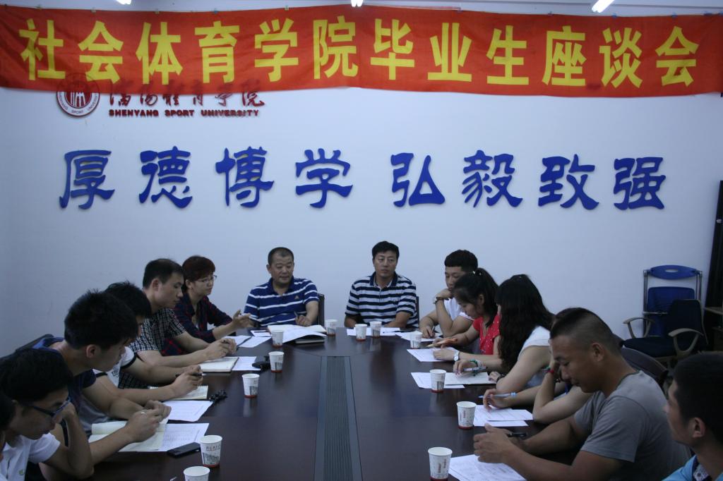 6月18日下午,社会体育学院在科技楼二楼召开了2014届毕业生代表座谈会。社会体育学院党总支书记樊占平、副书记刘秀红、副院长邹本旭出席了本次座谈会。