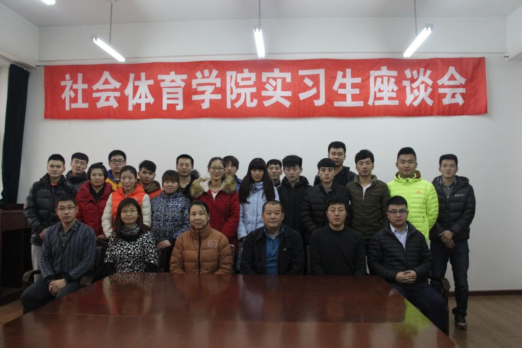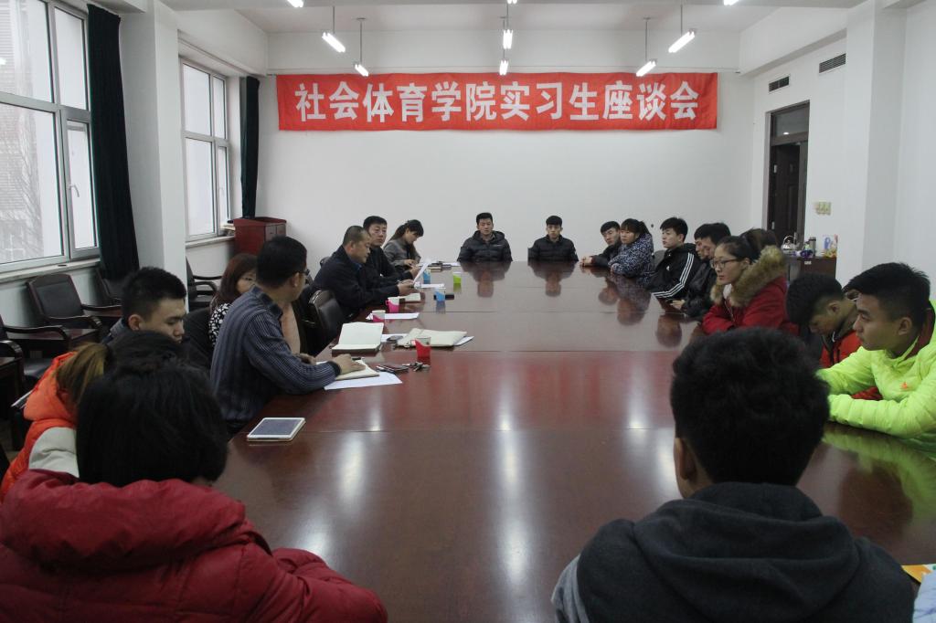 12月19日下午,社会体育学院2011级实习生代表座谈会在教务处会议室举行。社会体育学院院长曹继红、党总支书记樊占平,党总支副书记刘秀红、副院长邹本旭、实习办公室主任高观福,11级辅导员孙海峰老师以及实习学生代表参加了本次座谈会。