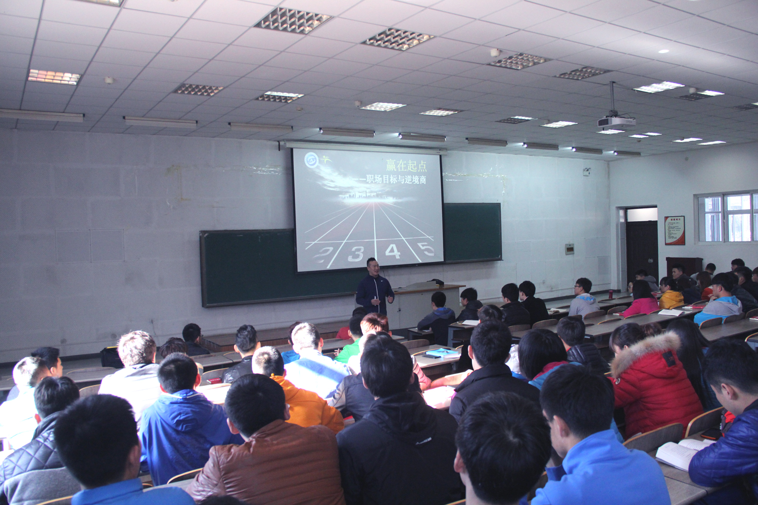 杨俊向同学们介绍了职场目标作用、如何设定职场目标、职场目标分解与执行、逆境商管理;同时他建议同学们在实习期间摆正位置,把自己当做是一名正式的员工,处理好与客户与同事的关系。