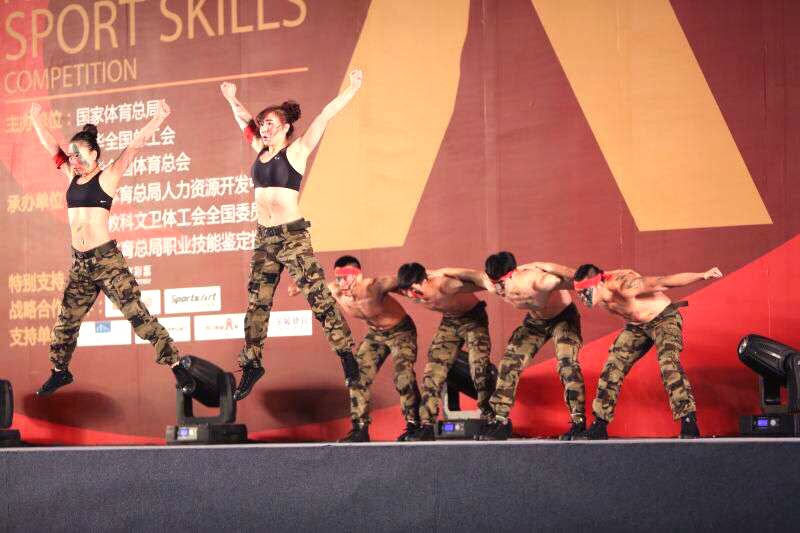 比赛为期4天,分为个人赛和团体赛。个人赛分预赛和决赛两部分,预赛包括理论考试和体能竞赛,理论考试对运动解剖、生理、生物化学、营养学等多方面的知识进行考核,体能竞赛分沙袋抛掷过横杆、健身球带球爬行、BOSU球S型跨越及标志筒Z型跑四项内容;决赛有体重体脂估测、运动处方设计、小团体课程演示三项内容。团体赛包括理论抢答、团体体能比拼(背负运人、叠加俯身支撑行走、健身球上跪姿接力传健身球)和团体表演。经过激烈的初赛和复赛,最终辽宁省获得大赛团体三等奖,2013级研究生孔睿获得个人比赛三等奖。