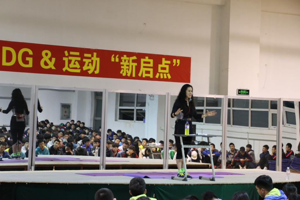 2015年4月23日,社会体育学院在综合馆组织了开展了DG&运动“新起点”体验课,课程由美国华人健身协会会长、美国体育运动协会普拉提、尊吧舞顶级导师董革主讲,社会体育学院全体教师以及2013、2014级全体学生参加了。