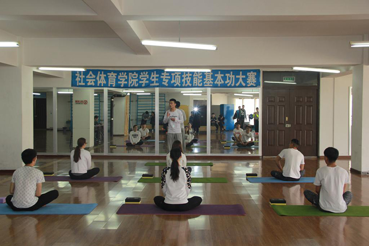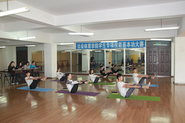 2016年4月14日,社会体育学院健身瑜伽专项基本功大赛分别在武术体操馆和教学楼502教室举行。