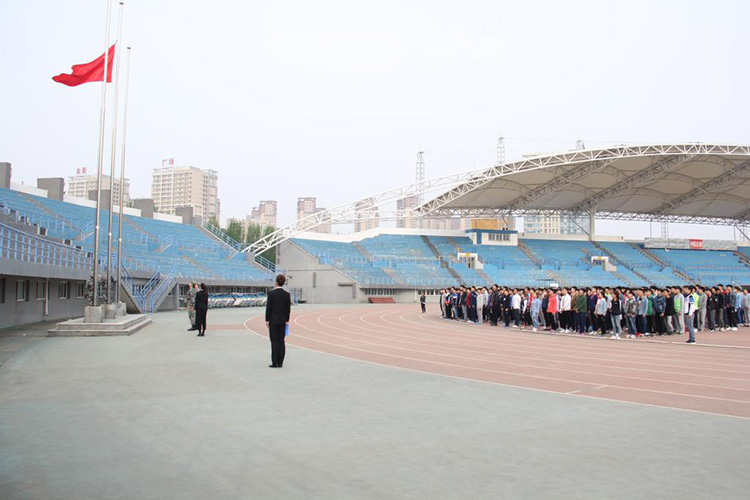 2016年5月9日早7点,社会体育学院在田径场前举行了庄严隆重的升旗仪式。社会体育学院党总支副书记刘秀红出席,团委书记孙海峰,2014级、2015级辅导员以及两个年级的学生参加了升旗仪式。