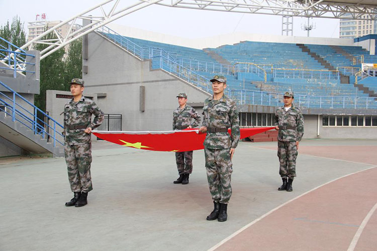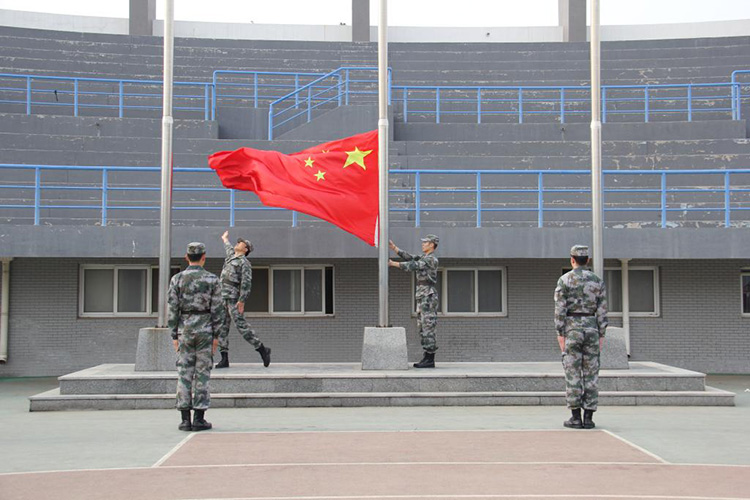 今天天气晴朗,社会体育学院2014级、2015级的同学们提前来到田径场,站好整齐的队伍,精神饱满地等待着国歌奏响,等待着五星红旗升起。7点整,护旗手着装整齐,迈着矫健的步伐,护着鲜艳的五星红旗入场,全体同学脱帽行注目礼,伴着《义勇军进行曲》的响起,五星红旗冉冉升起。