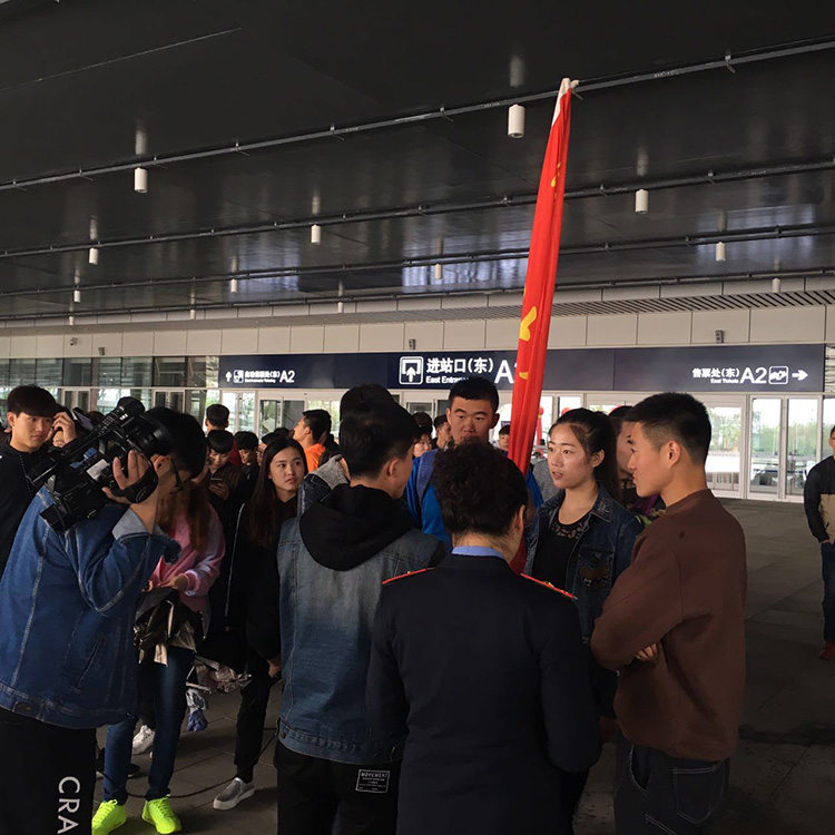 5月15日上午,为弘扬我院青年志愿者服务精神,社会体育学院共100名青年志愿者在团委书记孙海峰老师的带领下,来到沈阳南站南广场配合沈阳南站工作人员为列车“调图”工作进行志愿者宣传活动。
