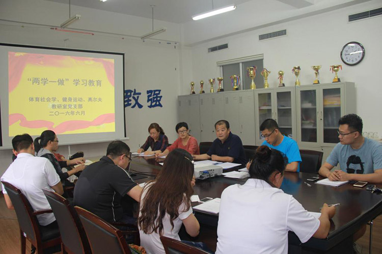 樊占平到体育社会学教研室党支部、健身运动教研室党支部、高尔夫教研室党支部;刘秀红到学生党支部;邹本旭到户外运动教研室党支部。几位班子成员从“两学一做”学习教育的时间背景、开展要求、自检自查三个方面,生动阐述了“两学一做”专题教育的重点内容和“四讲四有”的深刻内涵。引导教育党员干部以党章为标准规范,做一个“讲政治、有信念、讲规矩、有纪律、讲道德、有品行、讲奉献、有作为”的合格教师党员。