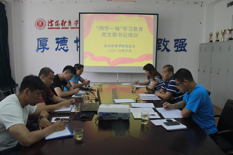 6月24日,社会体育学院党总支在科技楼二楼会议室开展“两学一做”学习教育党支部书记培训,党支副书记刘秀红、所属五个党支部书记参加,培训会由总支书记樊占平主讲。