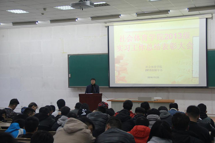 11月23日下午,社会体育学院在教学楼112教室召开2013级实习工作总结表彰大会。社会体育学院党总支副书记刘秀红、副院长邹本旭、2013级辅导员孙海峰、2014级辅导员吴可佳以及2013级、2014级全体学生参加本次大会。本次大会由2013级辅导员孙海峰主持。