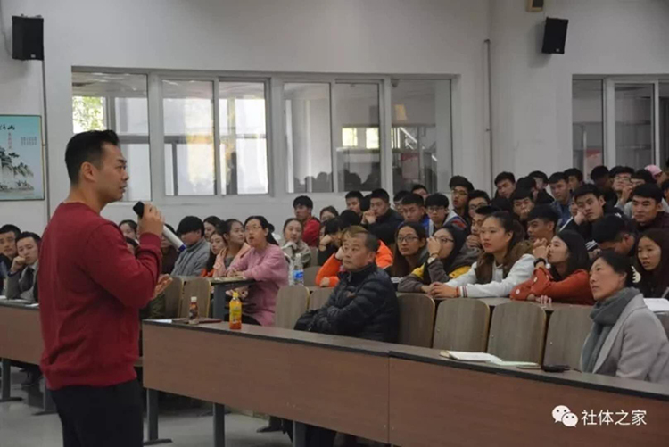 10月18日,社会体育学院2016级在教学楼112教室,举办“定制式”人才培养班宣讲会。社会体育学院院长曹继红、党总支书记樊占平、副书记赵宁,副院长宛霞、韦德伍斯培训人员出席。