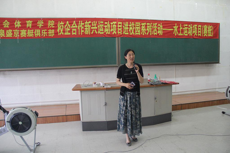 6月27日下午,由社会体育学院举办的“校企合作新兴运动项目进校园系列活动——水上运动项目(赛艇)”活动在教学楼112教室举行。社会体育学院党总支副书记赵宁、社会体育学院副院长宛霞及400余名师生共同参加了活动。