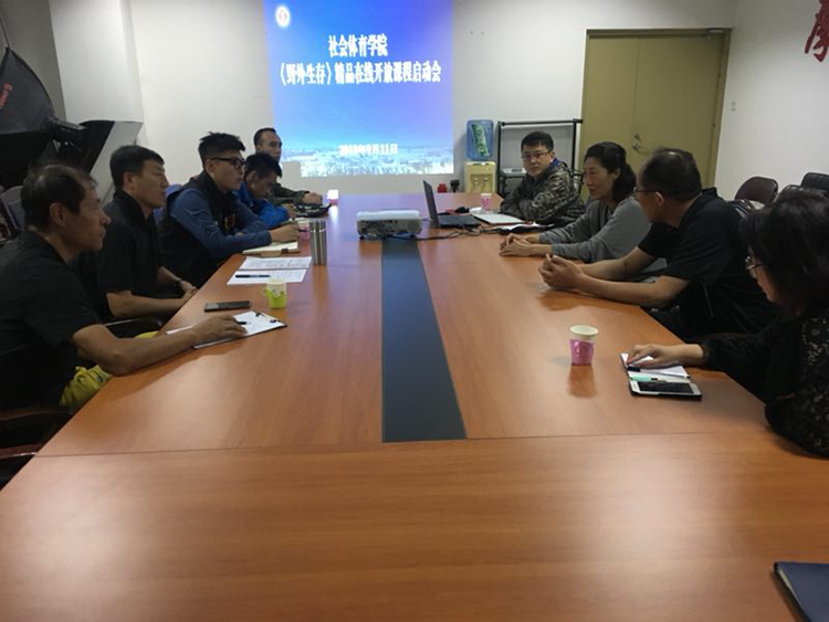 9月11日,《野外生存》精品在线开放课程启动会在社会体育学院会议室召开,教务处副处长崔鲁祥、社会体育学院副院长冯欣欣、副院长宛霞、《野外生存》课程建设小组成员以及负责本次课程技术支持的超星集团的两位技术人员参加会议,会议由课程负责人邹本旭教授主持。