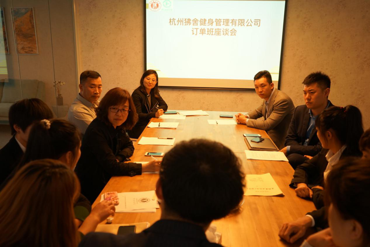 答辩结束后,答辩组教师同企业负责人刘思嘉、贾晶及“订单班”同学进行座谈。学生们根据一年的工作心得,提出学习运动医学、运动生理学、运动解剖学等专业基础课的重要性,同学们还希望学习有关职业规划、人际沟通方面的知识,企业负责人提出希望学院能更加注重学生意志品质的塑造。座谈会后,企业负责人带领老师们参观了企业门店。