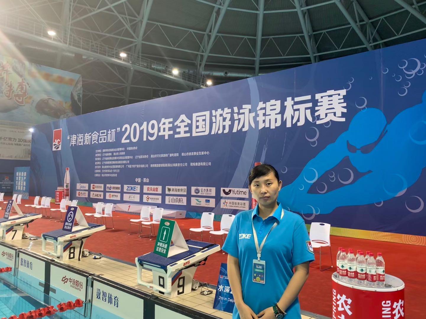 2019年全国游泳锦标赛于2019年9月4日至12日在辽宁省鞍山市奥体中心游泳馆举行。本次比赛是全国游泳最高水平的赛事之一,汇集了全国顶尖的游泳高手。来自全国各省(市)自治区25支代表队500多名运动员参加了35个项目的比赛。本次比赛赛期长,为9天15场,是严格按照2020年东京奥运会游泳比赛的日程安排,上午决赛,下午预赛的特点来进行。我校游泳教研室魏梅副教授作为国派裁判长身份参与执裁工作。在执裁过程中,魏梅老师以过硬的业务能力为公平竞赛提供了有力保障,得到了组委会及技术官员的高度评价。