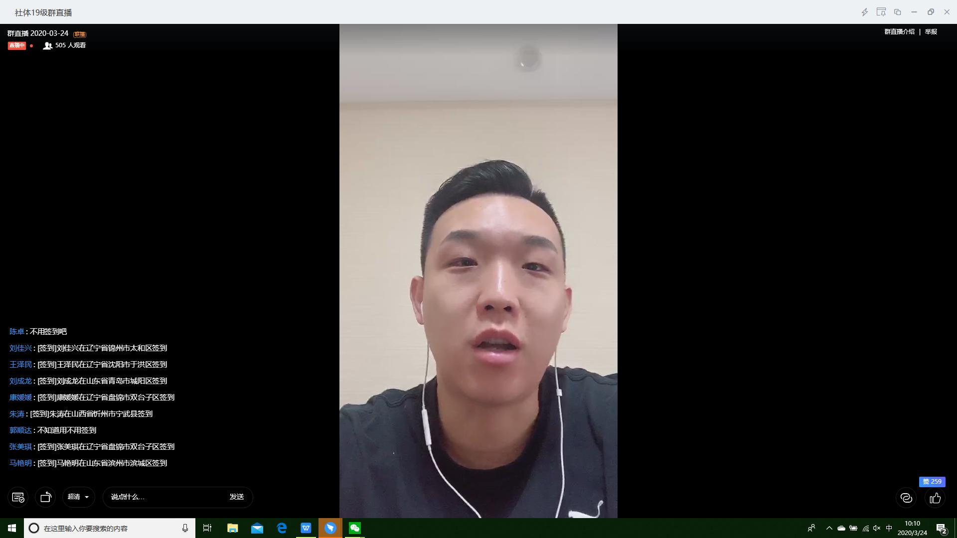 2020年3月24日上午10点,社会体育学院举办了MYFIT沈体订单班在线宣讲会,18级和19级两个年级的全体学生听取了的宣讲会。本次会议由沈阳体育学院11级毕业生,MYFIT(杭州狒舍健身管理有限公司)健身工作室创始人刘思嘉作为主讲人,他结合自身多年的经验为学生介绍了MYFIT、健身行业发展前景和现状以及沈体订单班的相关政策。本次宣讲会依旧采取线上直播的方式进行。