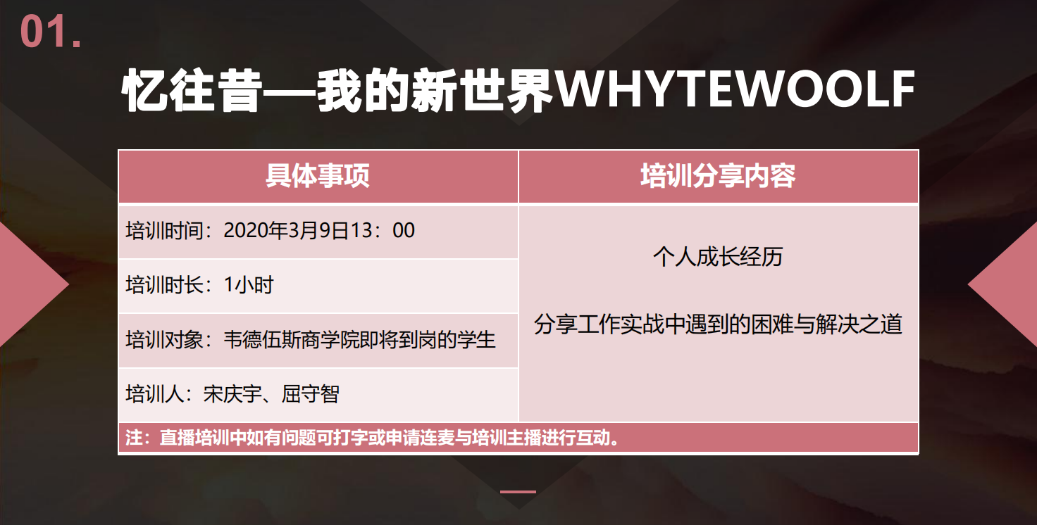 丰富、系统的培训内容,加深了订单班学员对职场的认知和对韦德伍斯企业文化的了解,激发了广大学员利用疫情期间的时间多多学习的热情。培训期间,培训师们准备充分,有的放矢,学员们热情满满,互动积极。经过系列培训,学员们提前做好了学习规划,提高了主动学习的思想意识和处理问题的能力,较好地达到了培训的预期目标。