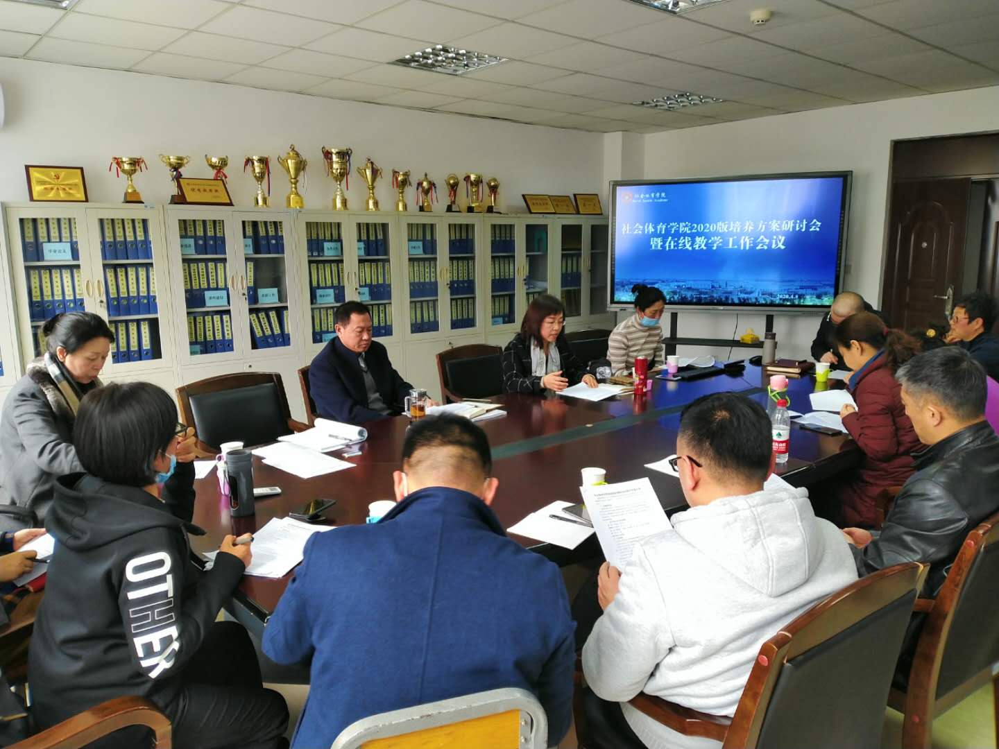 为全力做好2020版社会体育指导与管理专业、休闲体育专业本科培养方案修订工作,在定稿之前使全体教师统一思想、达成共识,社会体育学院于4月8日分别组织所辖教研室召开培养方案研讨会暨在线教学工作会议,受疫情影响,为避免人员过多,学院以教研室为单位召开会议,历时1天,会议由社会体育学院院长冯欣欣主持,社会体育学院党总支书记刘丙权及全体教师参会。