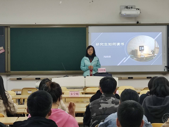 6位读书会指导教师均为社会体育学院博士,他们首先进行了自我介绍,并对读书会的要求和想法与学生进行了讲述,老师们精彩的介绍提升了学生们对读书会的期许。接下来,冯欣欣教授从调查研究生读书情况为切入点,以“研究生如何读书”为题进行了第一期读书会指导。她分为调研情况分析、为什么读书、读哪些书、如何有效读书四个环节进行讲述,通过亲身经历鼓励学生们坚持读书,并要持之以恒进行笔记记录,持续积累,厚积薄发。