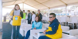 我院院长冯欣欣(右二)与志愿者交流,了解工作情况