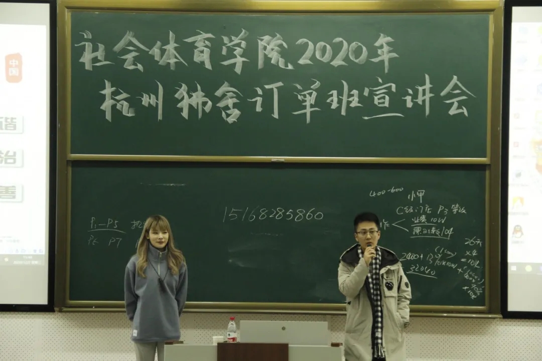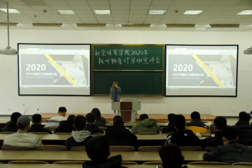 2020年12月2日,社会体育学院在教学楼112教室举办了“杭州狒舍订单班”宣讲会。本次宣讲会的主讲人为MYFIT(杭州狒舍健身管理有限公司)人事总监吴梦颖,社会体育学院办公室主任杨洁、2019级辅导员李志恒、全魁博参与了本次宣讲会。