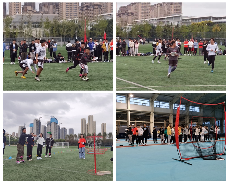 活动中,同学们围绕在场地边,观看飞盘院队的运动员们进行的团队飞盘表演赛。比赛结束后,同学们也亲身参与体验飞盘嘉年华中的各个趣味项目,感受到了飞盘运动的快乐,获得了丰厚的奖品。