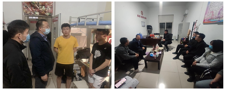 3月17日晚,党委学生工作部部长白涛一行,走访社会体育学院学生宿舍,对学生宿舍卫生、安全等方面进行细致检查,倾听学生心声,了解学生需求,社会体育学院党总支副书记赵宁和全体辅导员陪同。