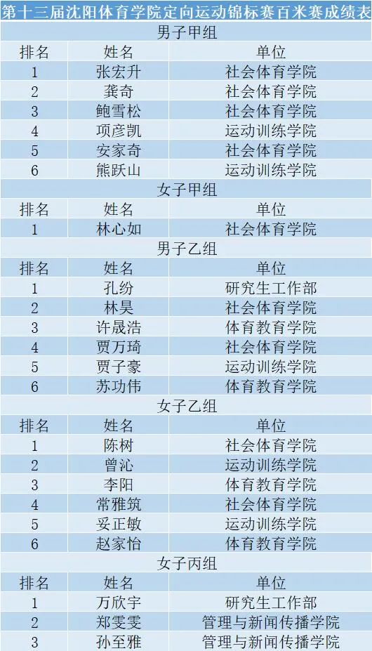 2022年10月22日,沈阳体育学院运动会定向运动比赛暨第十三届定向运动锦标赛在弘毅阁广场上拉开帷幕。本次比赛由竞训处主办,社会体育学院承办,休闲运动教研室,大学生竞赛管理委员会协办的一项全校赛事。竞训处、社会体育学院相关领导和老师出席开幕式。本次比赛分为甲,乙,丙三个组别,分为接力赛和百米定向赛,有来自7个单位,共计240余名运动员报名参赛。