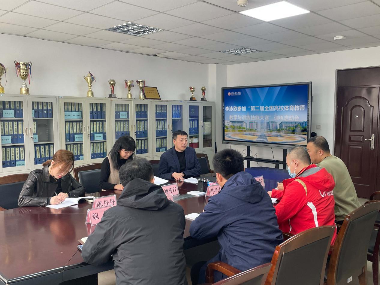 3月14日,社会体育学院组织召开了游泳教研室李泳欣老师代表辽宁省参加“第二届全国高校体育教师教学与训练技能大赛”训练启动会。党总支书记刘秀红、院长邹本旭、游泳教研室主任李新、办公室主任陈丹丹参加本次会议。