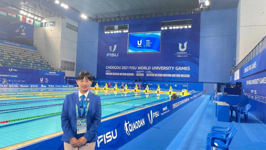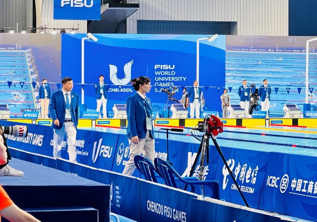 2023年7月28日至8月8日,第31届世界大学生夏季运动会在中国四川省成都市举行,社会体育学院游泳教研室,游泳项目国际级裁判魏梅副教授入选此次游泳比赛,担任国内技术官员(NTO),是赛事技术代表、竞赛官员、裁判员、计量官员的总称。