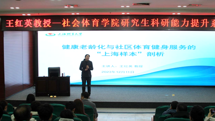12月11日,社会体育学院邀请上海体育大学体育教育学院党委书记、博士生导师王红英教授在图书馆一楼报告厅作以《健康老龄化与社区体育健身服务的“上海样本”剖析》为题的讲座。社会体育学院、体育教育学院、运动健康促进团队教师以及研究生参加会议。会议由社会体育学院院长邹本旭主持。