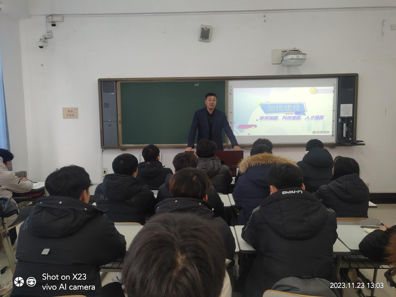 11月23日,社会体育学院党总支书记刘秀红、院长邹本旭分别在教学楼221教室、103教室为社会体育学院2023级和2022级学生讲授形势与政策课。
