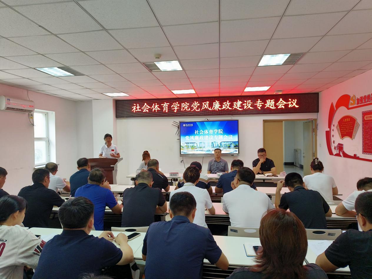 为进一步贯彻落实全面从严治党要求,深入推进社会体育学院党风廉政建设,强化教职工廉洁从教意识。8月22日,社会体育学院在游泳馆二楼大会议室召开党风廉政建设专题会议,党总支书记刘秀红主持会议,学院全体教职工参加会议。