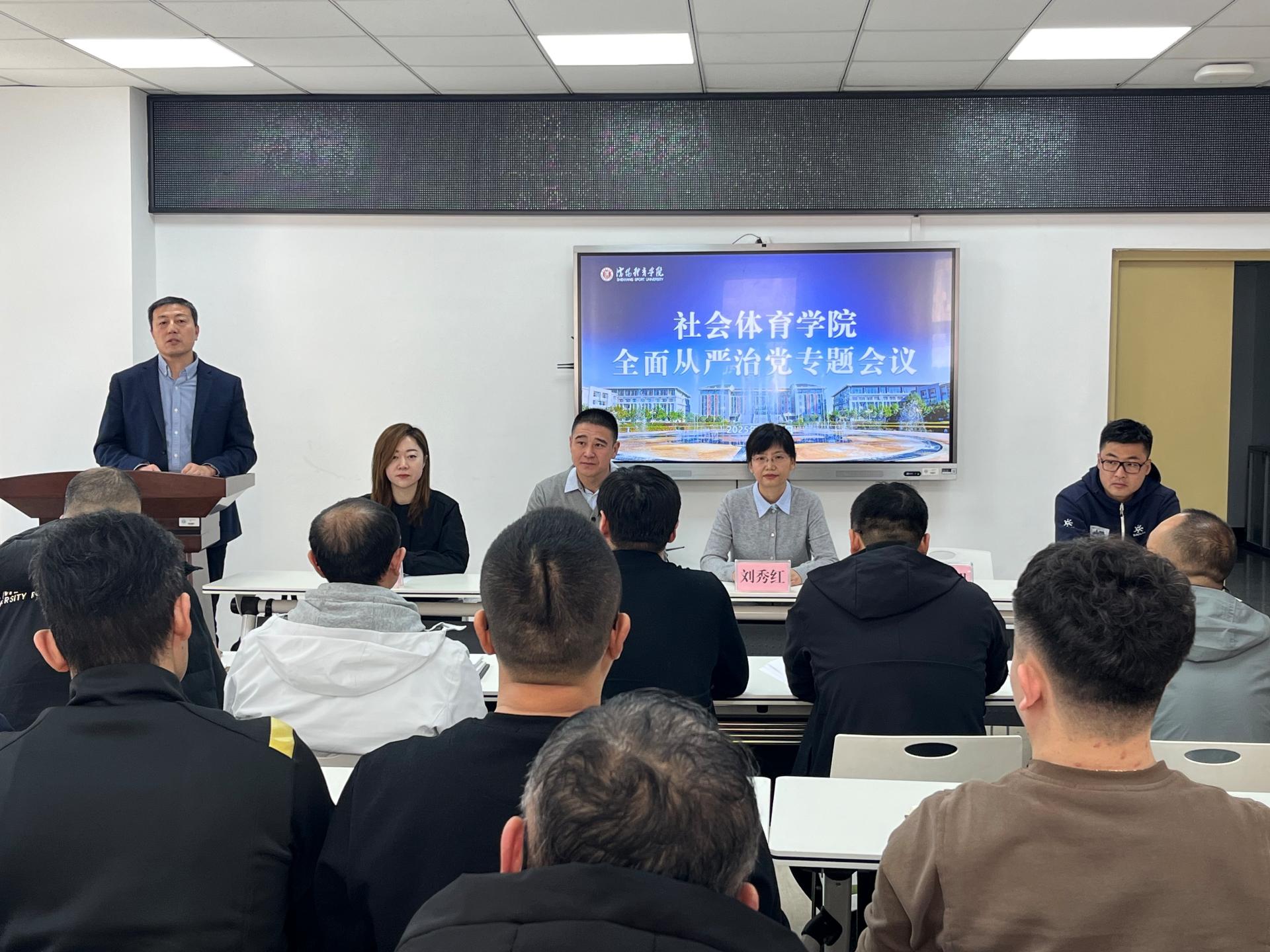 2月21日,社会体育学院在游泳馆二楼大会议室召开全面从严治党工作会议,全体教职工参加,会议由党总支书记刘秀红主持。