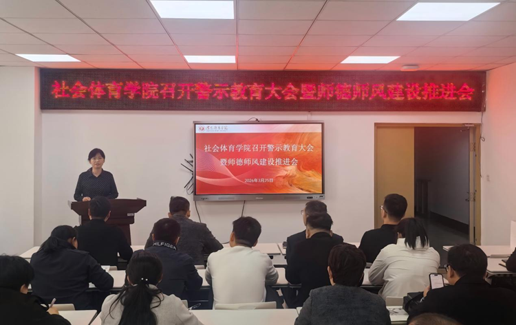 3月25日下午,社会体育学院召开警示教育大会暨师德师风建设推进会,全体教职工参会。会议由办公室主任温建飞主持。