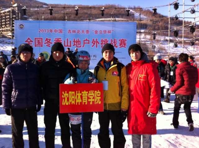 2013年12月7日-8日,由国家体育总局登山运动管理中心、中国登山协会、吉林省体育局、吉林市人民政府主办,吉林北大壶体育旅游经济开发区和吉林市体育局承办的全国冬季山地户外挑战赛在吉林北大壶拉开帷幕,来自全国各地的20支代表队进行了为期两天的激烈角逐,最终沈阳体育学院代表队在社会体育学院户外运动教研室的姜晓天和宋学岷老师的带领下,在众多队伍中脱颖而出取得了第二名的优异成绩。我院代表队在比赛中展现了高超的竞技水平,努力拼搏,尊重对手,尊重裁判,充分展现了沈体人的风采。