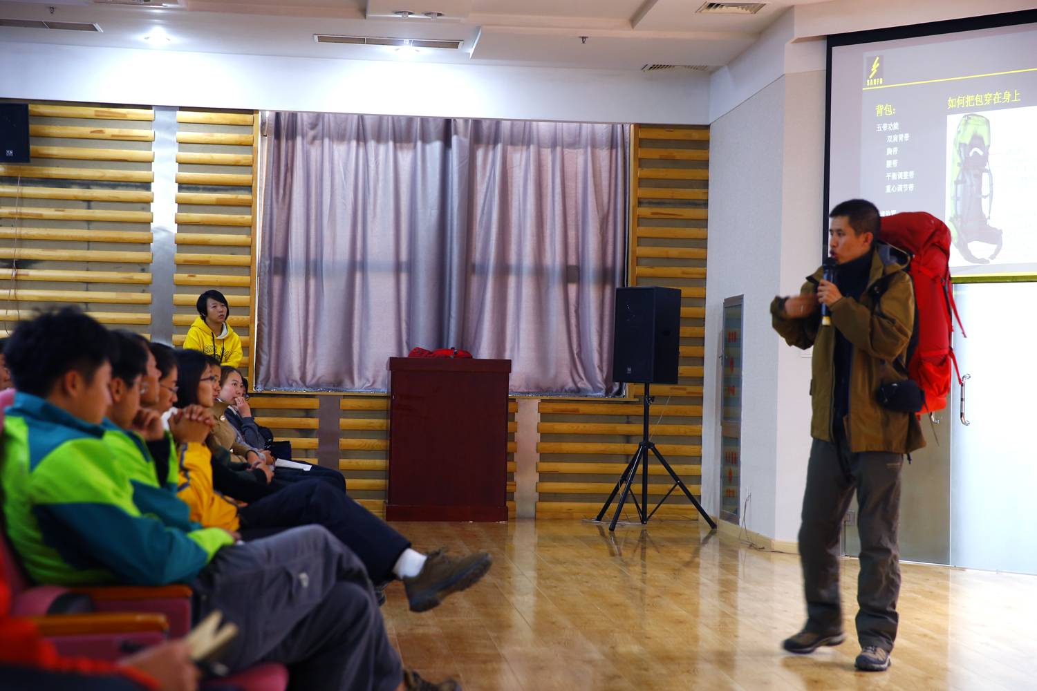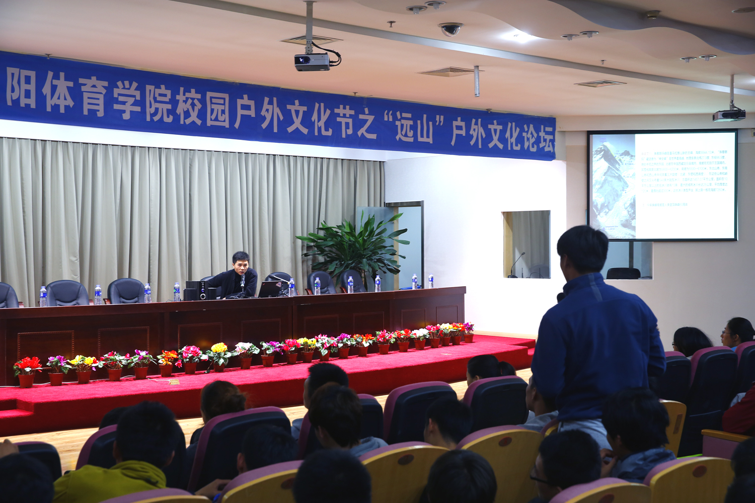 10月15日下午,社会体育学院首届校园户外文化节之“远山”户外文化讲座在图书馆报告厅举办。此次讲座作为学院首届户外文化节中的重要环节,分别安排了《纪念人类登顶珠峰60周年》和《自助旅行——走在路上》两场讲座,分别邀请了沈阳市登山协会会长孙义全和沈阳三夫户外用品有限公司总经理、资深户外人士李海亮主讲,学院户外运动教研室教师以及热爱户外运动的学生200余人参加了讲座,享受了一场户外文化的饕餮盛宴。
