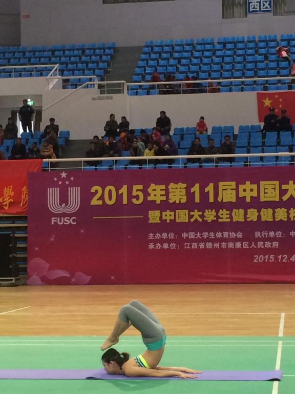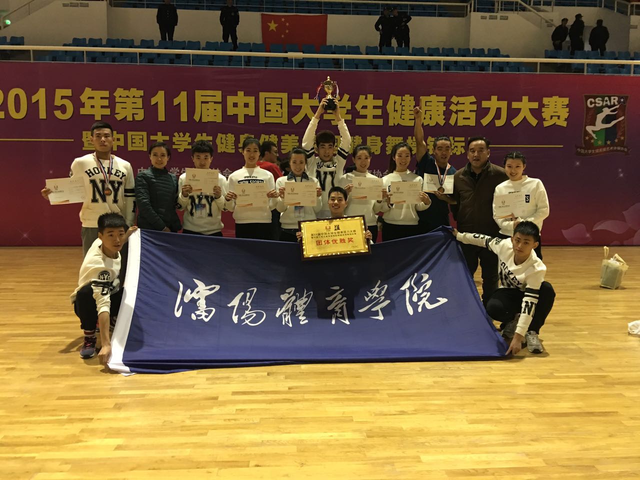 2015年12月4日-6日,由中国大学生体育协会主办的“第11届中国大学生健康活力大赛”在江西赣州举行。由我院8名学生、体育教育学院1名学生和运动训练学院1名学生组成的沈阳体育学院代表队参加了瑜伽项目的比赛。队伍由我院健身运动教研室黄锡祥老师带队,王静宜老师执教。