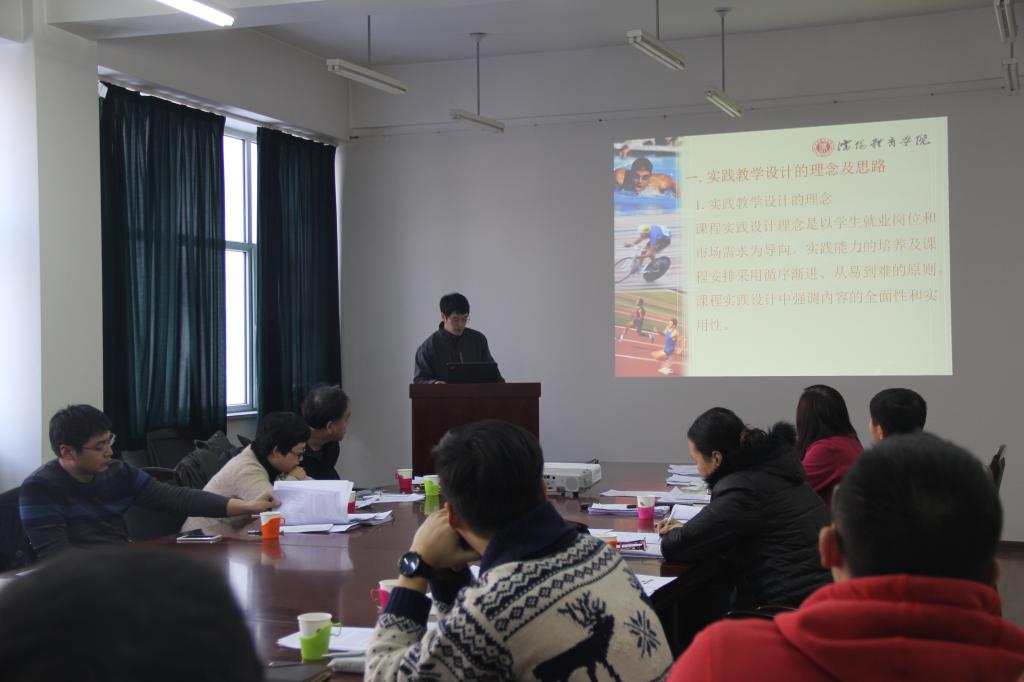 研讨会上,体育社会学教研室、户外运动教研室、健身运动教研室、高尔夫教研室分别就《职业岗位导向下理论课实践教学设计——以《人际沟通原理与实务》为例》、《职业岗位导向下“大众性运动赛会策划与组织”课程建设的思考》、《职业岗位导向下户外专修课程体系构建——以社体、休闲两个专业为例》、《职业岗位导向下户外专修课程实践教学设计与实施——以社体、休闲两个专业为例》、《职业岗位导向下器械健身专修课程体系构建》、《器械健身专修课程实践教学设计与实施》、《高尔夫专修课程教学体系构建及其设计实施的思考》等课程的建设情况、存在的主要问题和下一步的解决思路进行了汇报。