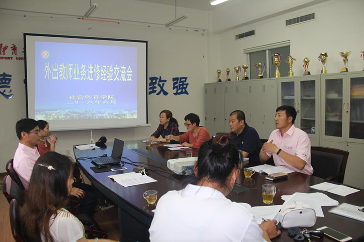 户外运动教研室宋学岷就参加青少年户外营地管理人员培训、全国户外营地指导员师资师资培训心得体会;孙永生就参加户外教育师岗位培训;方海明就参加野外医学高级急救课程(WAFA )学习体会;高尔夫教研室赵全斌就参加2016年中国高尔夫球协会中级教练员培训向全体教师进行了汇报。