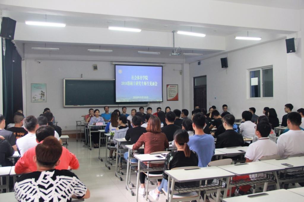 9月19日,社会体育学院在教学楼115教室召开2018级硕士研究生师生见面会,社会体育学院党总支书记樊占平、党总支副书记赵宁,副院长冯欣欣、副院长宛霞、全体研究生导师出席,2018级硕士研究生参会。