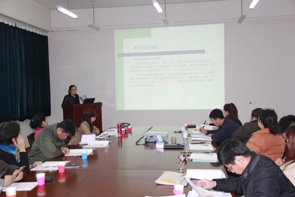 本次研讨会共有四个教研室八门课程参加汇报,有建设时间较长1985年开设的专业平台课程《体育社会学》,有2014年新开设课程《拓展训练》,有对本科论文撰写帮助较大的《社会调查原理与方法》,有学时最多达336学时的《专项理论与实践》课程。研讨是以课程小组为单位,在课程负责人的带领下,针对课程发展的不同阶段建设情况进行了专题汇报。