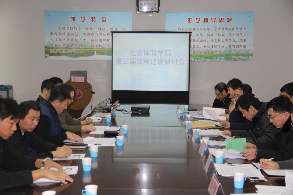 1月6日上午,社会体育学院第三届课程建设研讨会在科技楼三楼教务处会议室举行。李杰凯教授、林勇虎教授、马艳红副教授、王建国教授、斯力格教授、郭亦农教授、王晓春教授、徐开春教授等专家应邀出席了本次研讨会,社会体育学院全体教师参加会议。