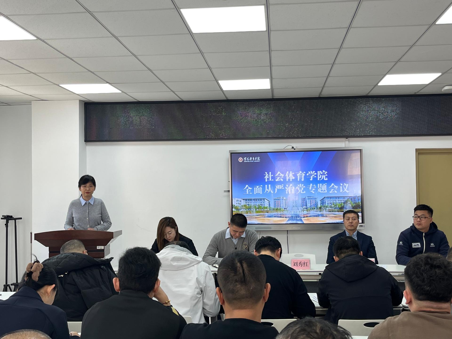 2月21日,社会体育学院在游泳馆二楼大会议室召开全面从严治党工作会议,全体教职工参加,会议由党总支书记刘秀红主持。