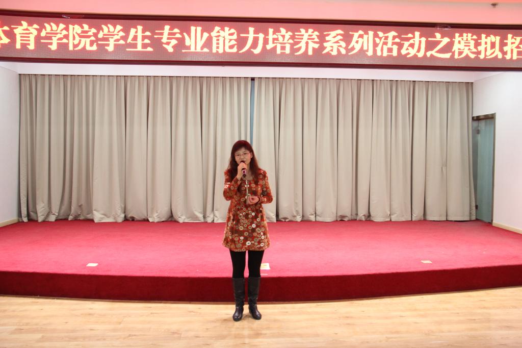 最后,社会体育学院党总支副书记刘秀红对本次活动进行了总结。她说,模拟招聘会是我院的一项特色活动,是建立在“校企合作”的基础上,围绕专业建设,利用企业资源,把人才培养和企业需求紧密结合起来,通过活动,让企业的行家为学生把把脉,让学生发现自身的不足,在未来的学习中有针对性的弥补和提高,全面提升专业素养,更好面对以后职场的激烈竞争。